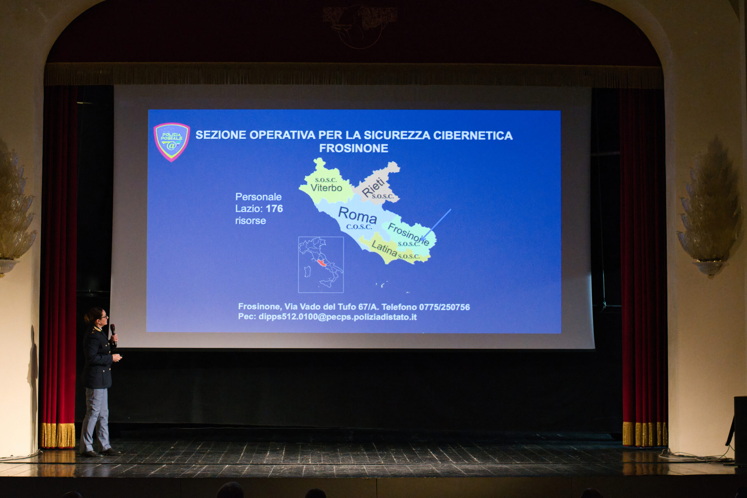 La dott.ssa Umbertina Picano, Sostituto Commissario della Sezione Operativa per la Sicurezza Cibernetica di Frosinone, ha restituito una fotografia lucida del panorama italiano: minacce reali, risposte istituzionali operative h24, e l’urgenza di momenti di confronto come questo.